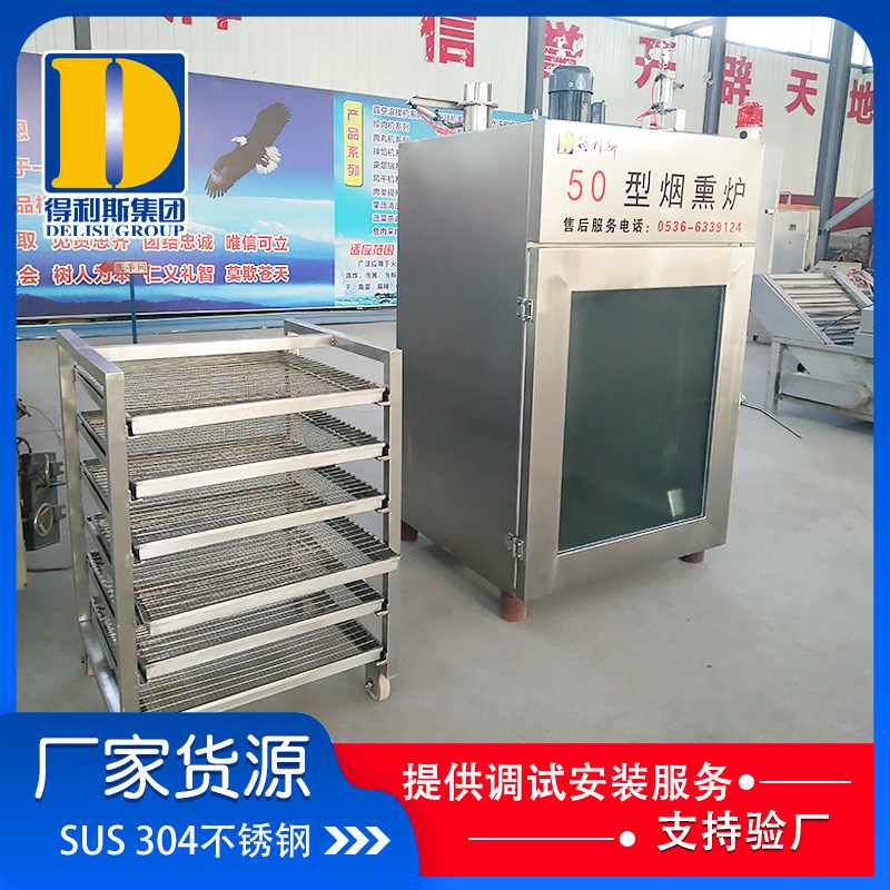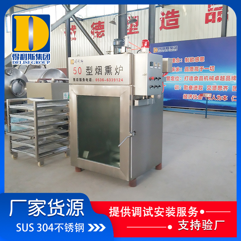 煙熏爐具有蒸煮、干燥、煙熏、清洗及安全保護(hù)等功能,有小型煙熏爐,全自動(dòng)煙熏爐,半自動(dòng)煙熏爐等多個(gè)型號(hào)以及內(nèi)置發(fā)煙和外置發(fā)煙兩種發(fā)煙方式。全自動(dòng)煙熏爐是由電腦自動(dòng)化控制 7寸維綸屏畫面,在一個(gè)畫面上同時(shí)顯示各種參數(shù),以便監(jiān)控運(yùn)行狀態(tài);全自動(dòng)煙熏爐可實(shí)現(xiàn)遠(yuǎn)程控制;打印配方、溫度、濕度曲線;全自動(dòng)煙熏爐可儲(chǔ)存至少99個(gè)工藝配方。風(fēng)循環(huán)系統(tǒng) 使產(chǎn)品在烘烤、蒸煮、干燥、煙熏等過程中的溫度、濕度的一致性,從而保證了產(chǎn)品的著色均勻,色澤美觀。