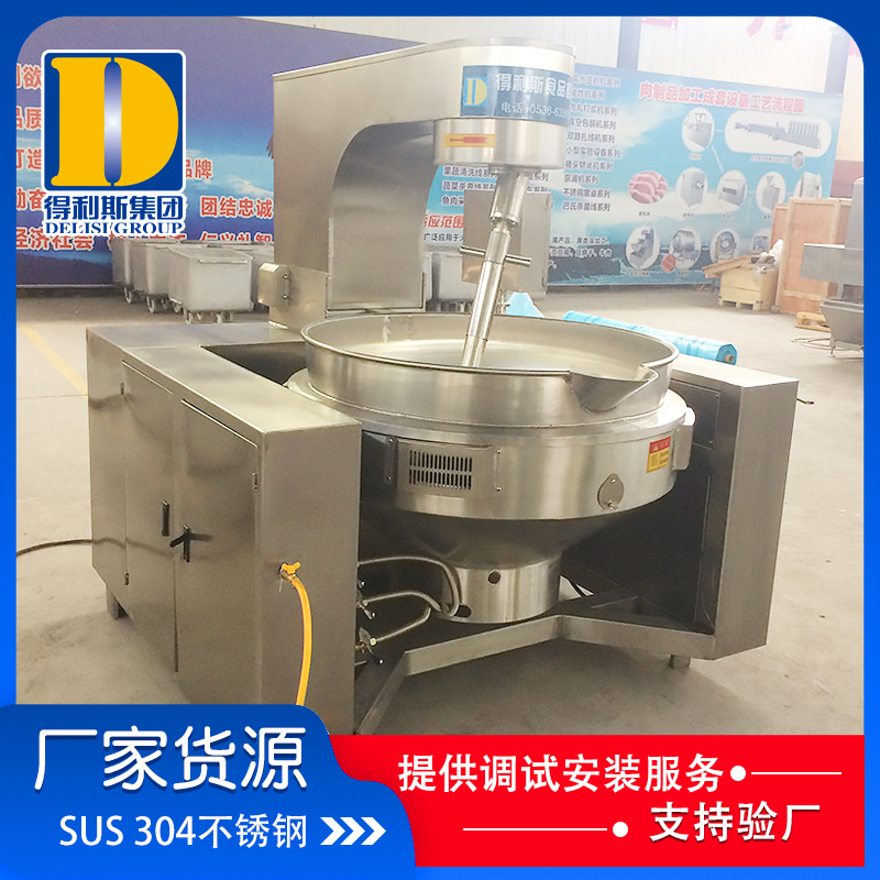 熬制鍋因為它的優點就是攪拌方式模仿人工攪拌,能把鍋底的食物翻到上面來,而且攪拌速度可以自動調節,鍋膽受熱均勻,溫度可以自動調節控制,不易糊鍋,鍋底采用液壓式翻臂,自動將鍋體傾斜翻鍋出料,從翻炒到出鍋全程自動,節省人工。