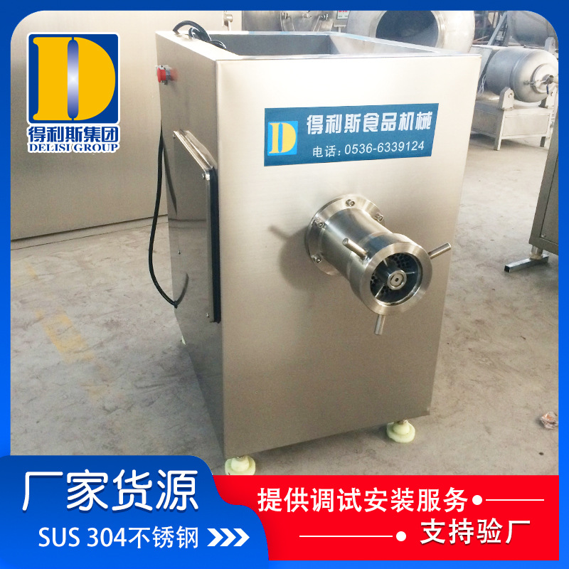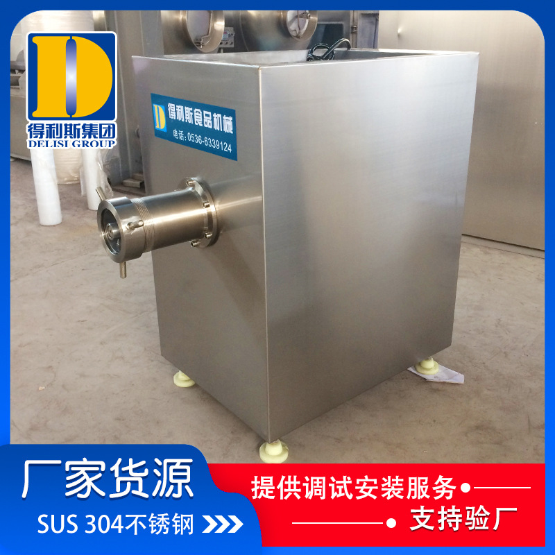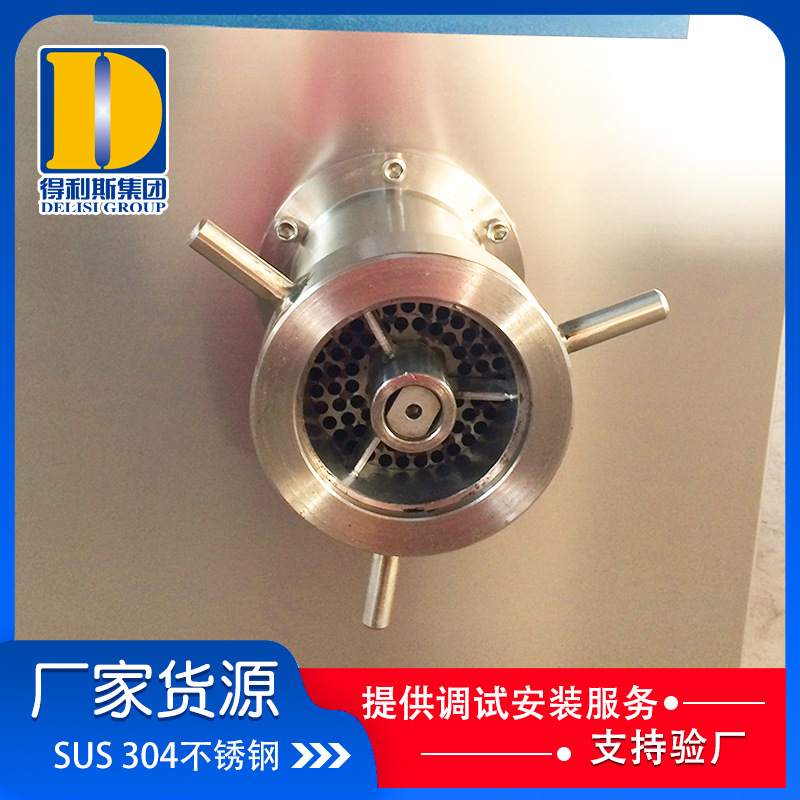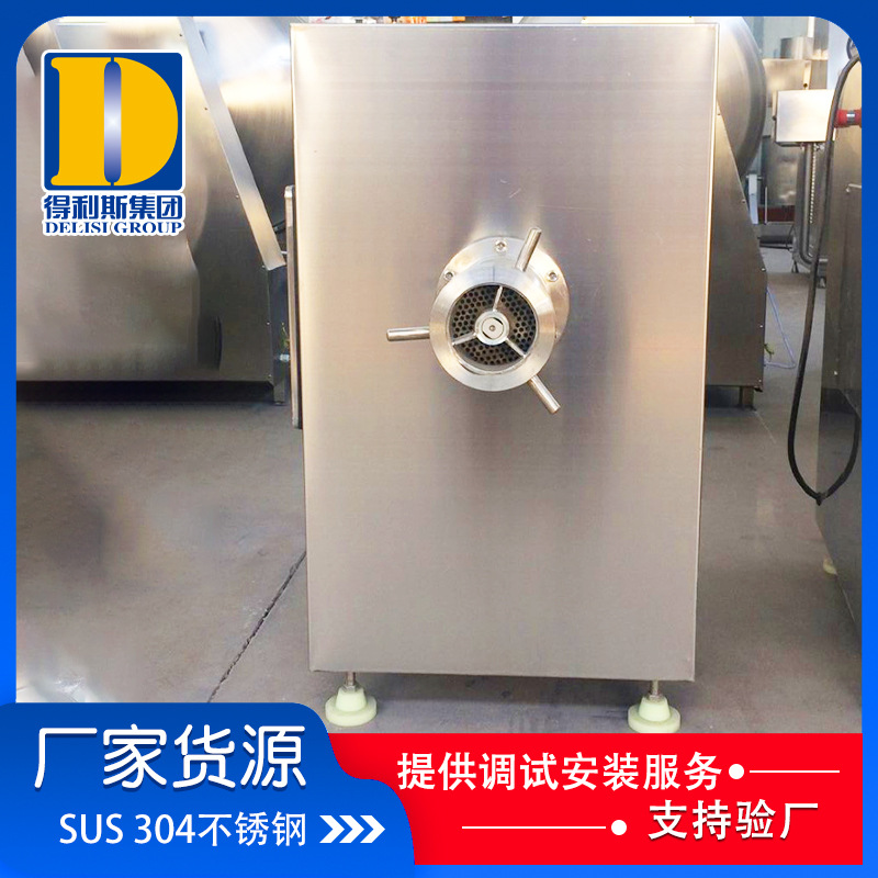 3、凍肉絞肉機(jī)是肉制品生產(chǎn)行業(yè)中通用性高使用范圍廣的種肉食加工設(shè)備。它是依靠螺旋桿將料斗箱中的原料肉推到預(yù)切板處,通過螺桿的旋轉(zhuǎn)擠壓使用孔板與鉸刀產(chǎn)生相對運(yùn)轉(zhuǎn),從而將原料肉切成顆粒塊狀,確保了肉餡的均勻性。